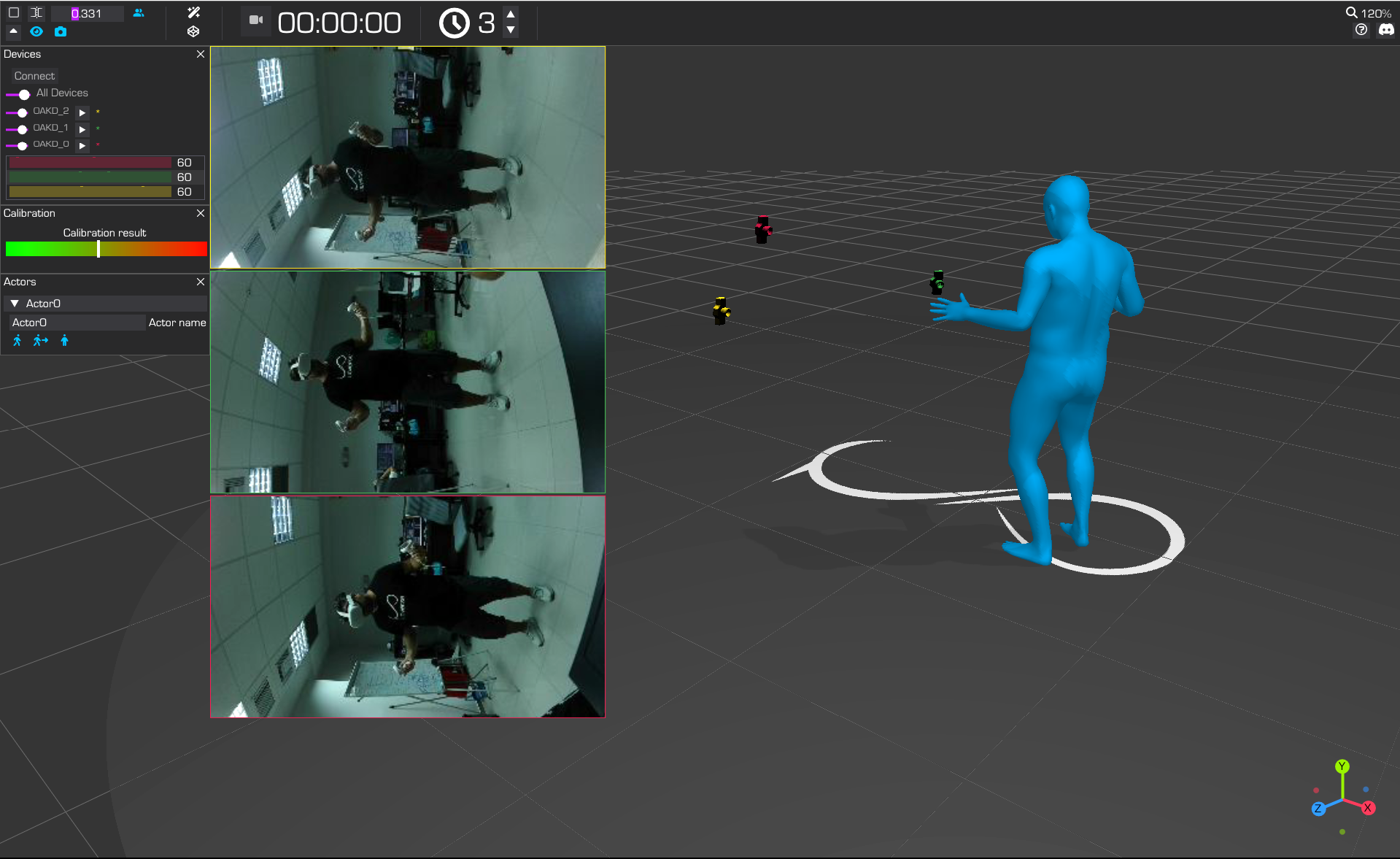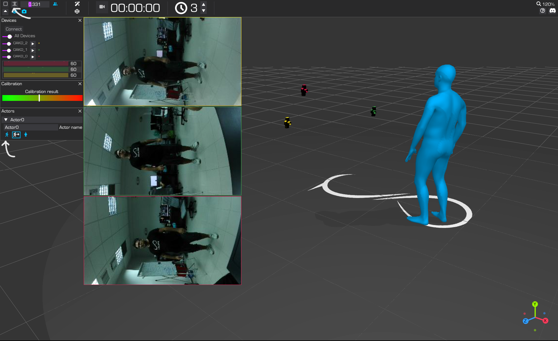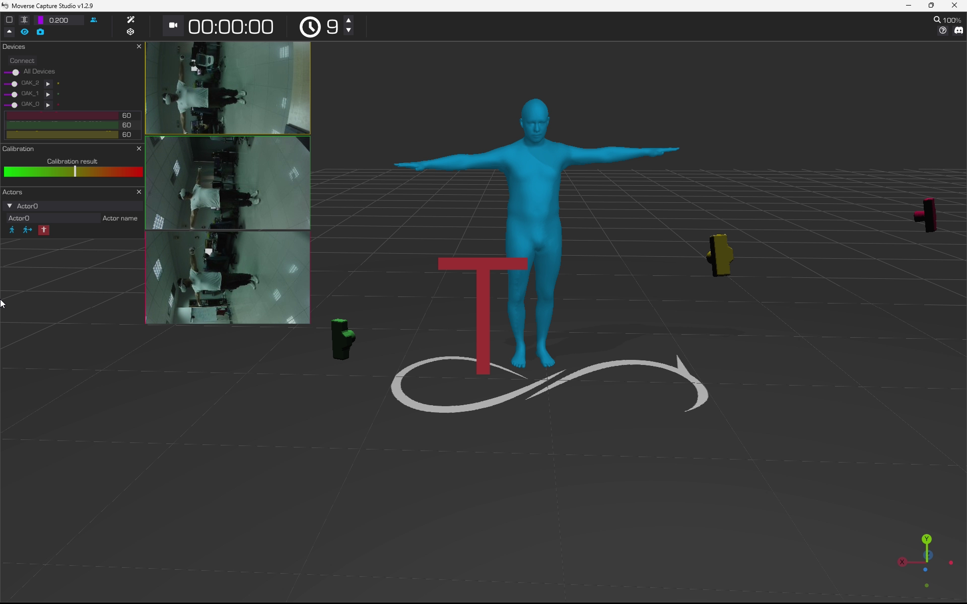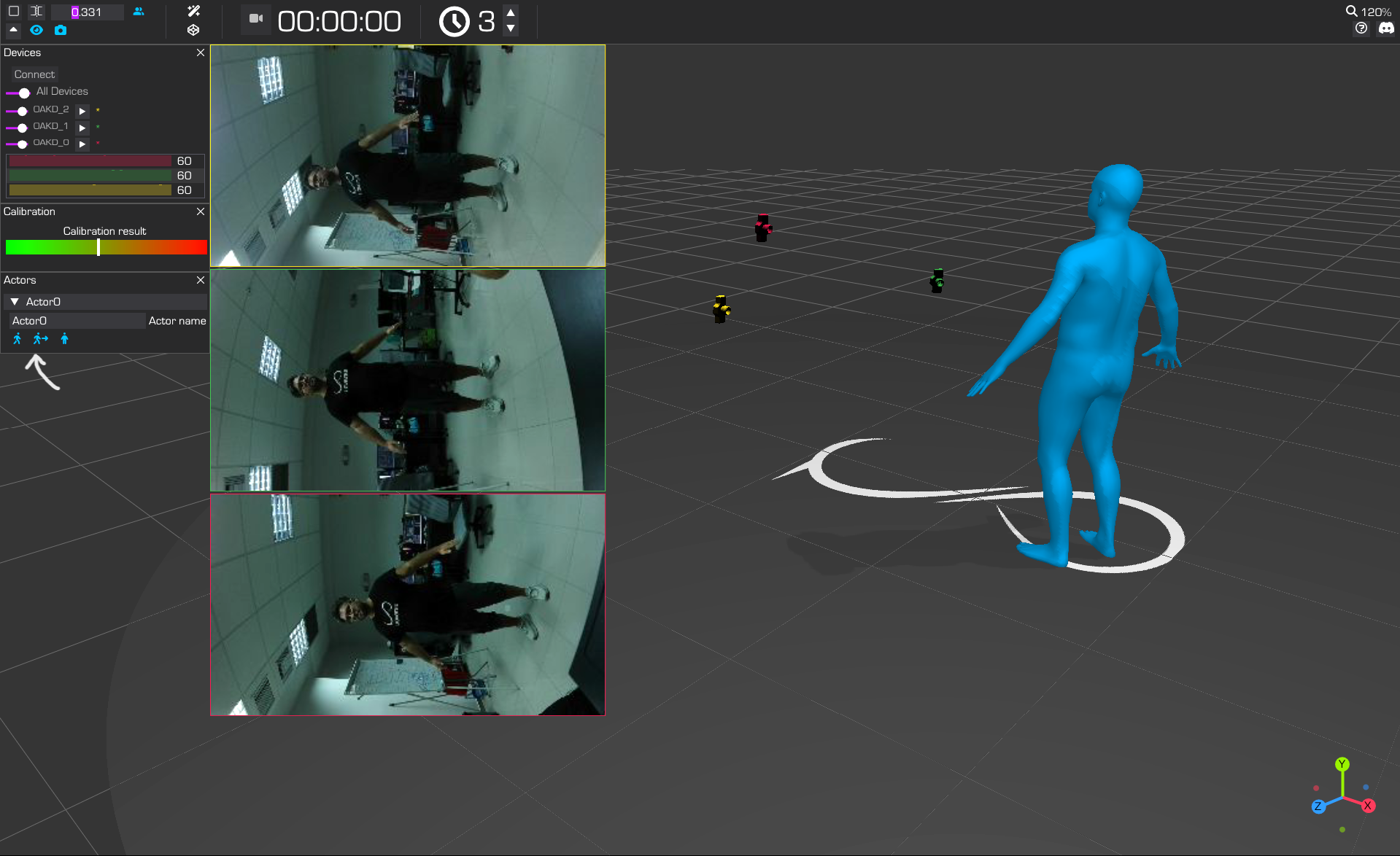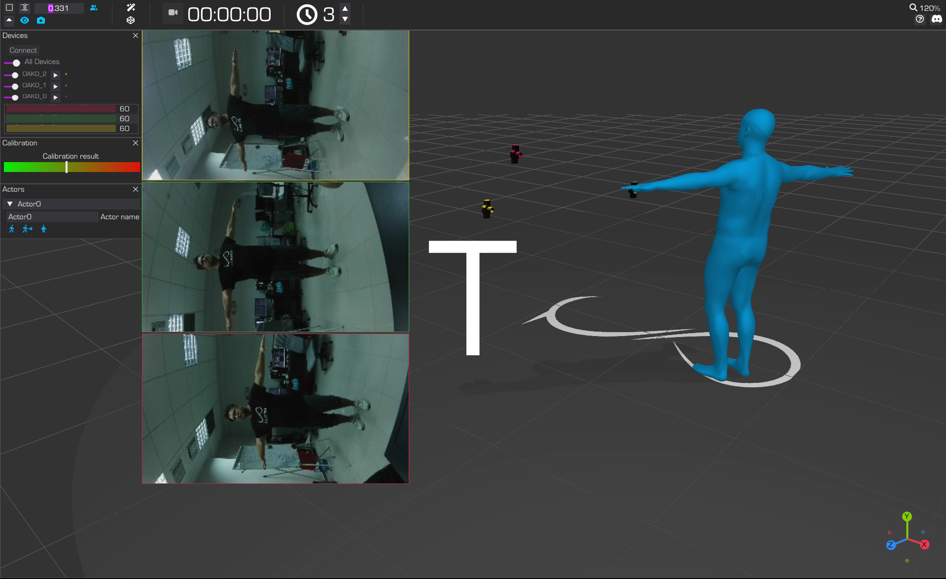 The actor stands in A-pose in the middle of the capturing space to initialize body tracking